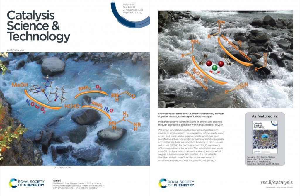 This year, two scientific articles entitled “Mild and selective transformations of amines and alcohols through bioinspired oxidation with nitrous oxide or oxygen” with a biomimetic ruthenium catalyst (highlighted on the Back Cover of Issue 6). And, “Bioinspired copper-catalysed nitrous oxide reduction with simultaneous N–H or O–H bond oxidation” (highlighted on the Front Cover of Issue 22) were published in the chemical scientific journal Catalysis Science & Technology. These articles are outcomes of the collaborations of the AHI and the University of Lisbon.